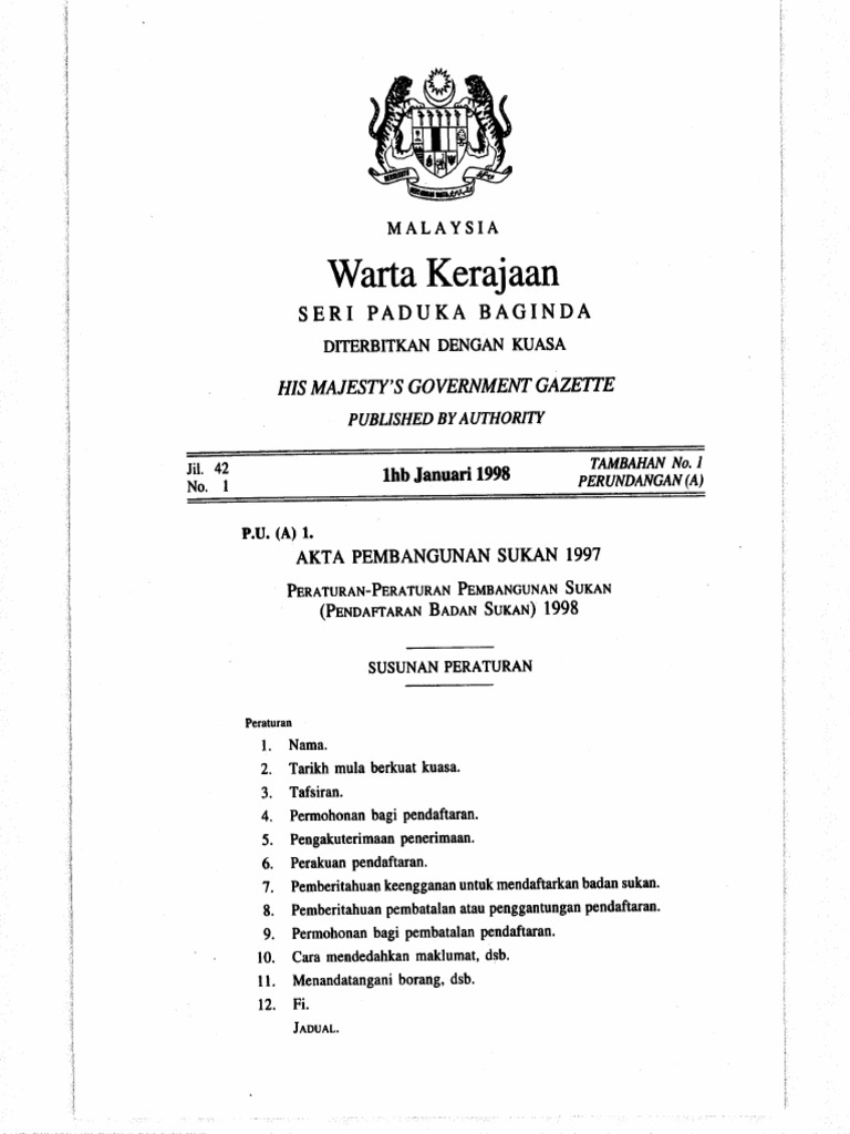 Akta 576 Akta Pembangunan Sukan 1997 Pdf