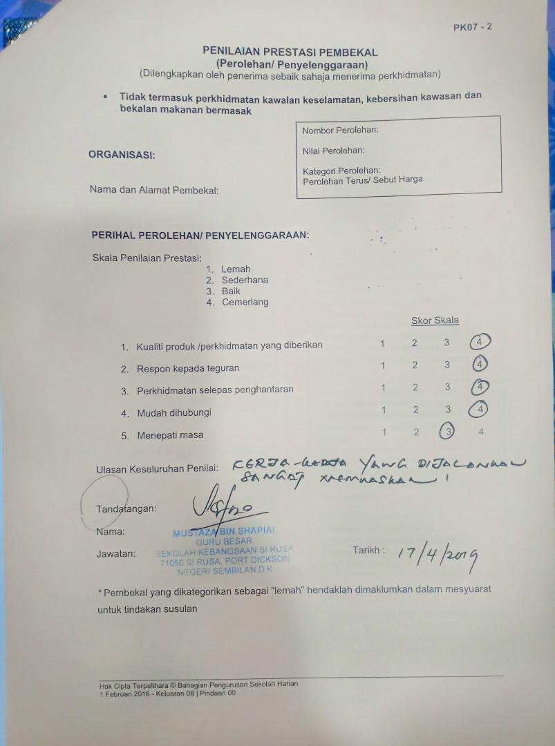 Borang Penilaian Prestasi Pembekal Kontraktor Jkjr Pdf Google Drive