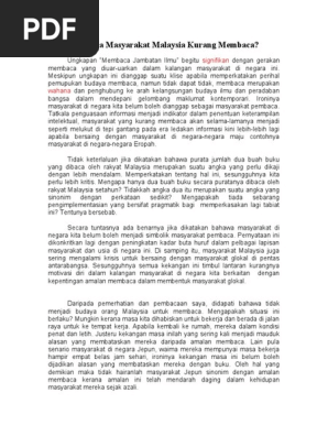 Doc Senario Budaya Membaca Di Kalangan Rakyat Malaysia Siti Nurshahidah Sah Allam Academia Edu