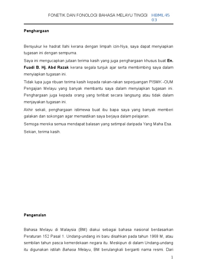 Fonetik Dan Fonologi Bahasa Melayu Tinggi