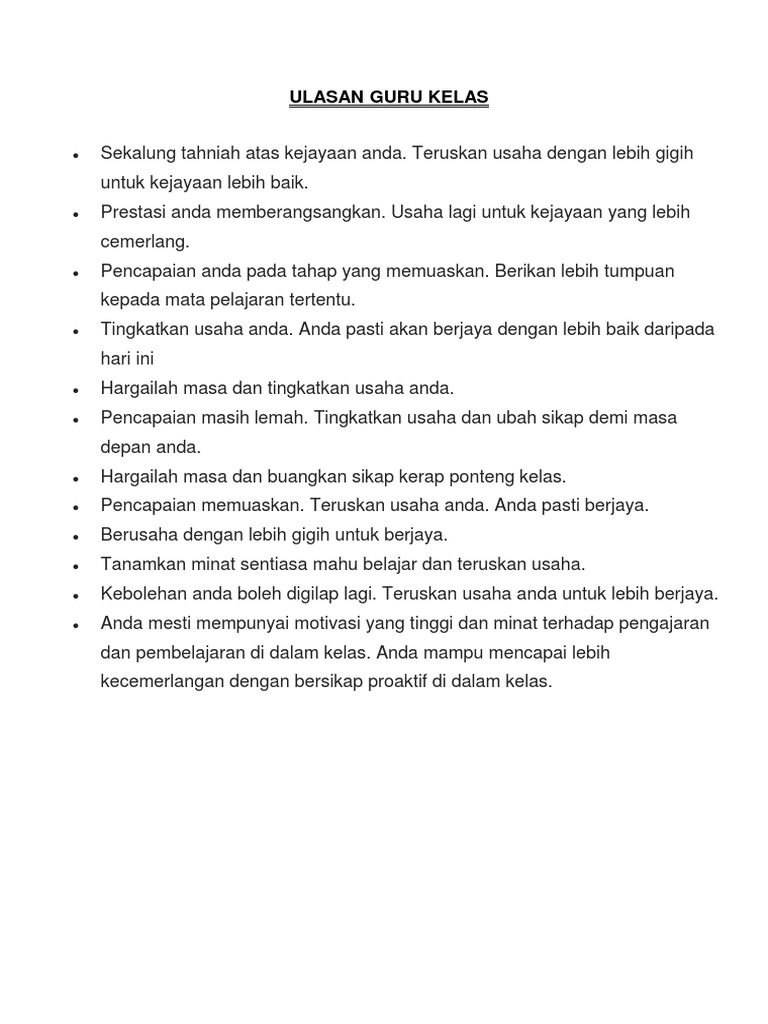 Contoh Ulasan Untuk Rujukan Guru Kelas Guru Subjek