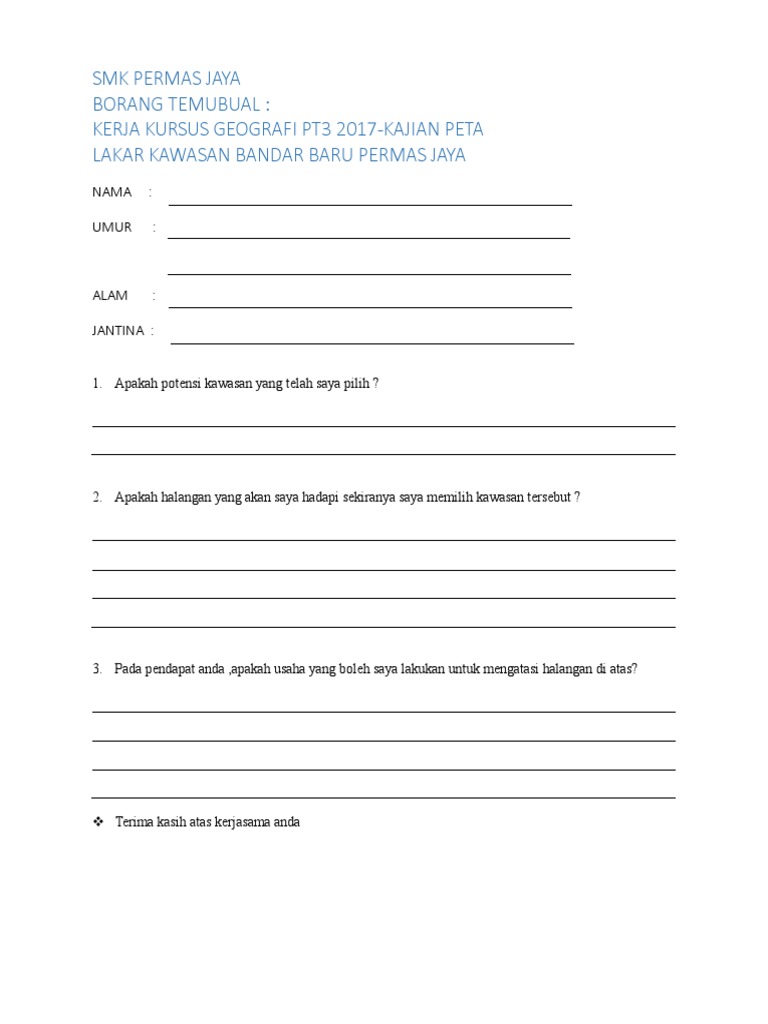 Contoh Borang Kaji Selidik Geografi Pt3 2019