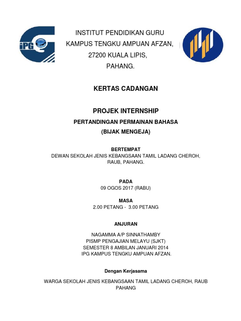 Projek Internship 3 Kertas Kerja Majlis Apresiasi Kot