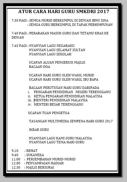 Diari Seorang Pencatat Maya Sambutan Hari Guru Peringkat Sekolah Tahun 2017