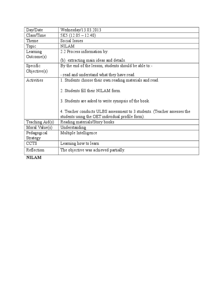Nilam Lesson Plan