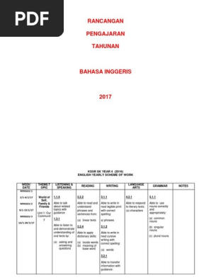 Rancangan Pengajaran Tahunan Bi Tahun 3 Kssr Yearly Scheme Of Work Ye