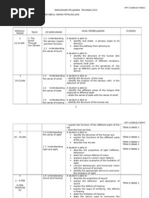 Rancangan Pengajaran Tahunan Sains Form 2 2015 Senses Digestion
