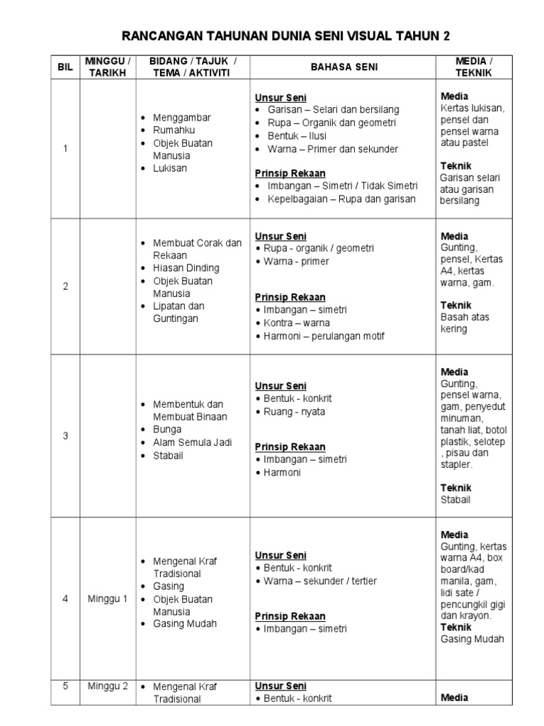 Rpt Dunia Seni Visual Tahun 2 Sumber Pendidikan