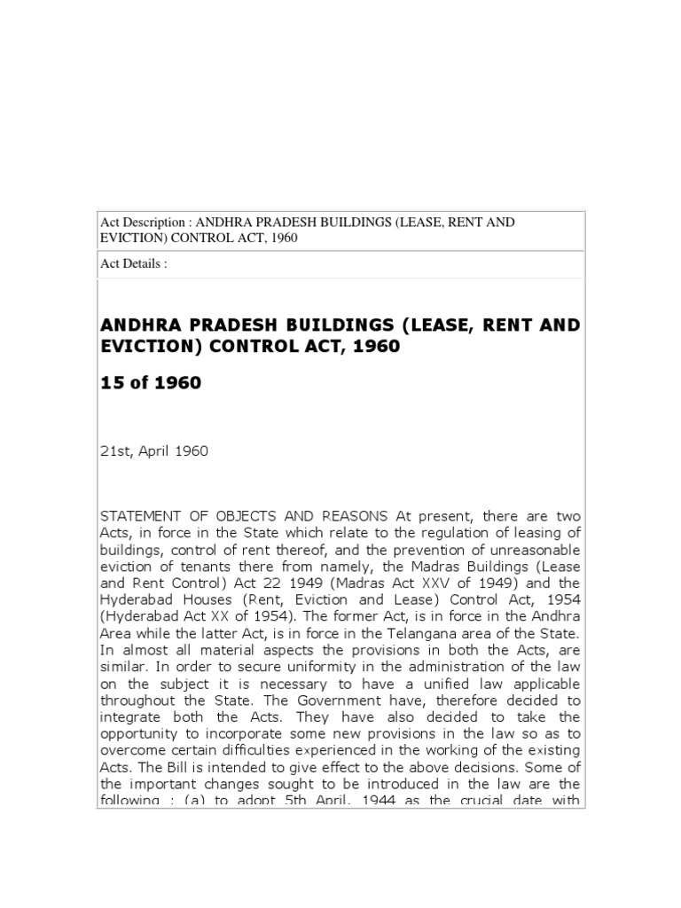 Andhra Pradesh Buildings Lease Rent And Eviction Control Act 1960 Leasehold Estate Landlord