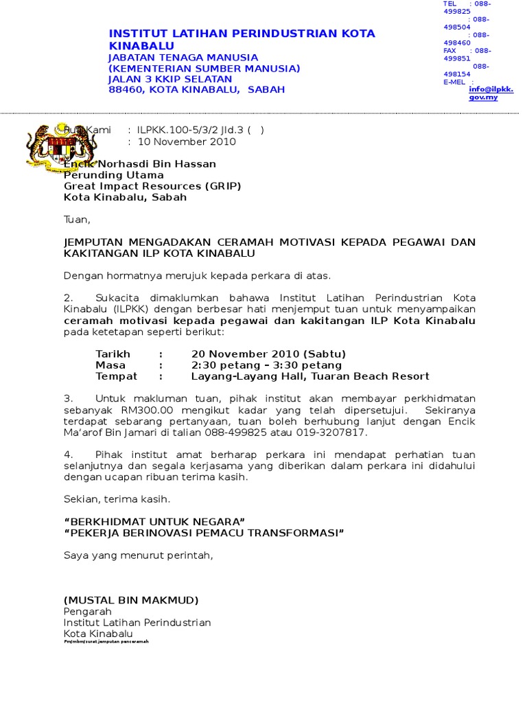 Surat Rasmi Jemputan Sebagai Penceramah Surat Rasmi 1
