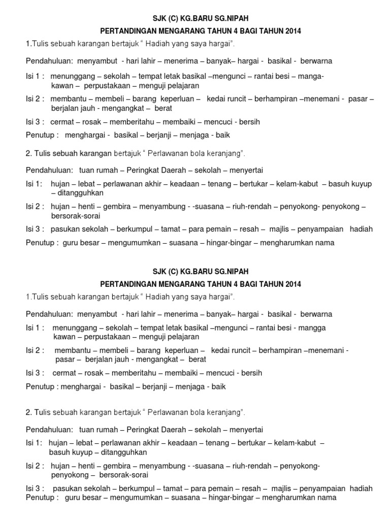 Tajuk Karangan Bahasa Melayu Tahun 3 Malay Language Language And Literature Writing