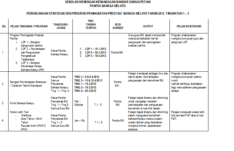 Rancangan Tahunan Panitia Bahasa Melayu 2012