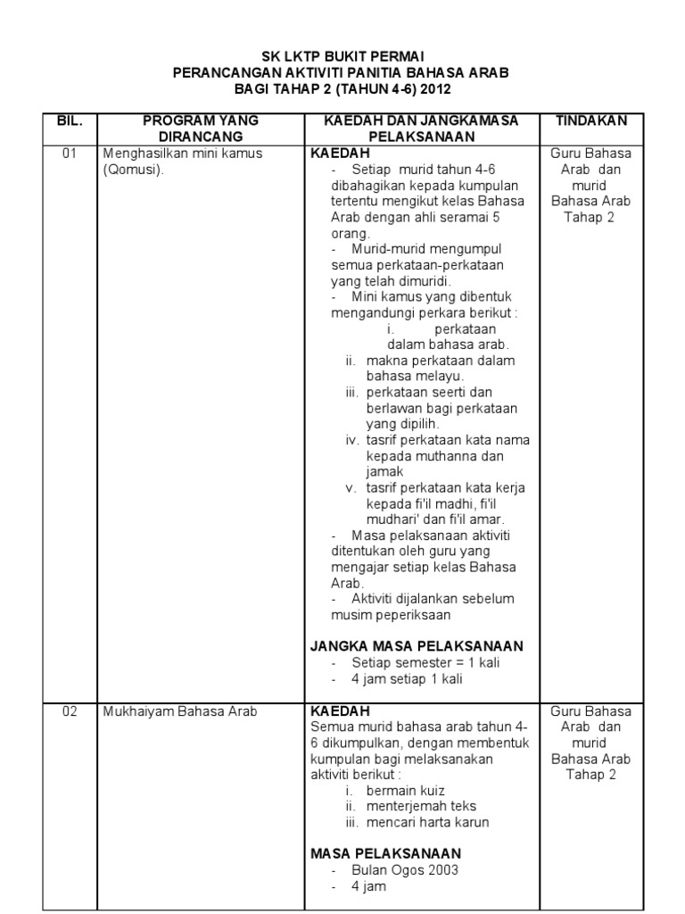 Perancangan Aktiviti Panitia Bahasa Arab